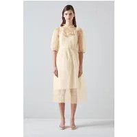 LK Bennett Maddie Pintuck Midi Dress Ecru