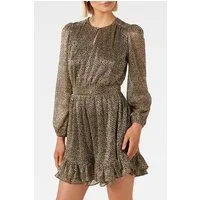 Forever New Goldie Long Sleeve Plisse Mini Black/gold