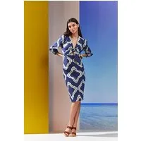 LK Bennett Daniela- Tie Midi Dress Navy Multicolor