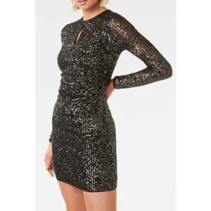 Forever New Robin Sequin Long Sleeve Mini Gunmetal