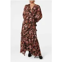 Forever New Maria Ruffle Midi Dress Black Delphi Floral