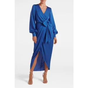 Forever New Mirella Wrap Satin Midi Dress Blue Atmosphere