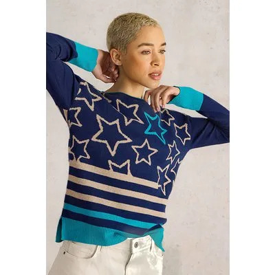 White Stuff City Multi Star Jumper Navy Multi