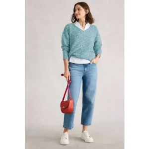 White Stuff Texture V Neck Mid Blue