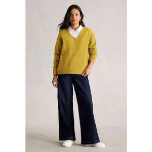 White Stuff Textured V Neck Jumper Mid Chartreuse