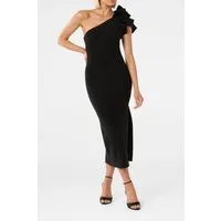 Forever New Celeste One Shoulder Ruffle Bodycon Dress Black