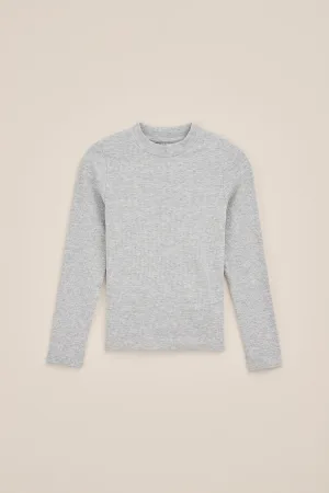 WE Fashion – Meisjes geribd T-shirt – Lichtgrijs – Katoen –