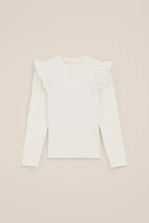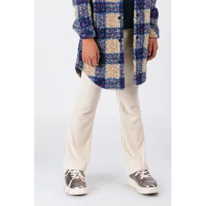 WE Fashion – Meisjes wide leg broek met ribstructuur – High waist – Ecru – Katoen –