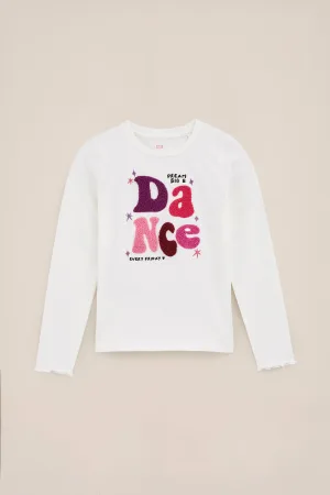 WE Fashion – Meisjes T-shirt met opdruk – Regular fit – Gebroken wit – Katoen –