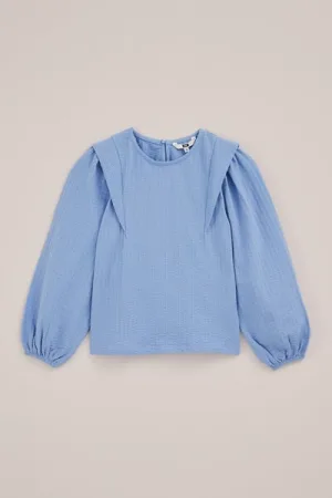WE Fashion – Meisjes seersucker blouse – Regular fit – Pastelblauw – Katoen –
