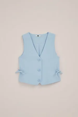WE Fashion – Meisjes gilet met strik – Regular fit – Pastelblauw –