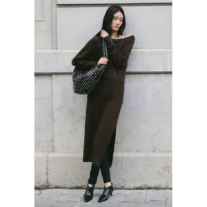 ONLY Gebreide jurk ‘ONLTALIO’ donkerbeige / wolwit