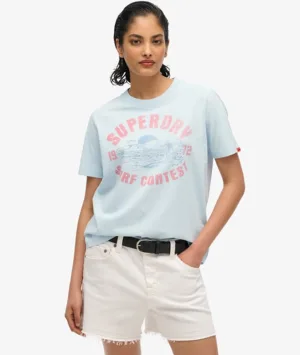 Superdry Vrouwen Travel Souvenir T-shirt met Relaxte Pasvorm Lichtgrijs