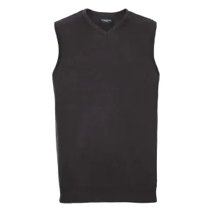 Russell Collection Heren Gebreid V Hals Mouwloos Sweatshirt (Zwart)
