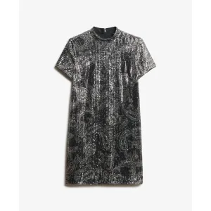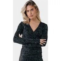 Colourful Rebel Fay Lurex Stripe Fake Wrap Top Metallic Silver