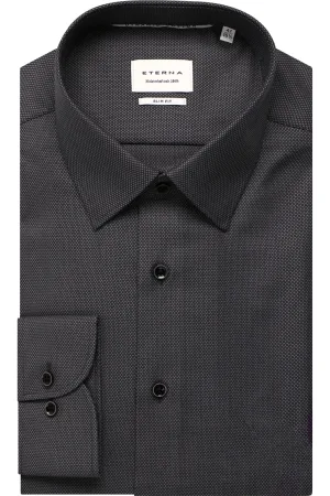 ETERNA Comfort Fit Overhemd zwart, Gestructureerd