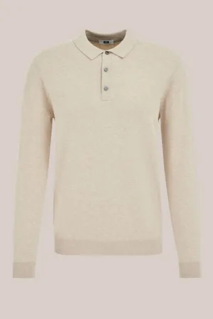 Fundamentals – Heren polo – Slim Fit – Lichtbruin – Merino wol –
