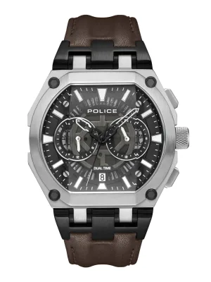 POLICE Analoog horloge ‘Mensor’ donkerbruin / zwart / zilver