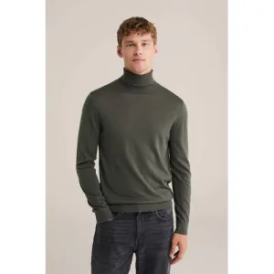 WE Fashion coltrui met wol fijn gebreid donkergroen