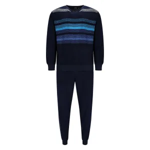 HAJO Pyjama lang marine / hemelsblauw / donkerblauw / wit