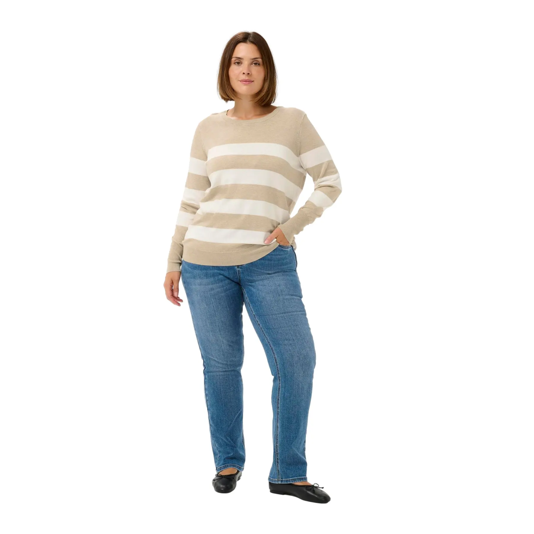 Red Button Skyler Linen/visc Pinstripe Srb4863 T-shirt Korte Mouw Pebble