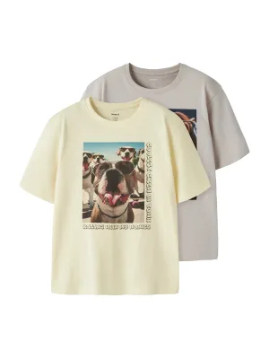 NAME IT Shirt ‘NKMVOTO’ lichtblauw / bruin / pasteelgeel / lichtgrijs