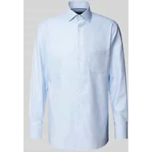 OLYMP modern fit overhemd – structuur – lichtblauw met wit en donkerblauw mini dessin – Strijkvrij – Boord