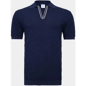 R2 Amsterdam Polo korte mouw Blauw Zipper Polo Short Sleeve Cott 132.POLO.018/010