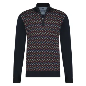Fellows United Fellows United Pullover Half Zip Jaquard Rectangles Bordeaux 4XL