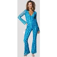 Colourful Rebel Tie Dye Mesh Extra Flare Pants Light Turquoise