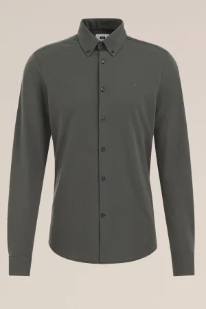 Fundamentals – Heren Slim fit overhemd van piquéjersey – Slim Fit – Legergroen – Katoen –