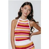 Colourful Rebel Nicky Crochet Stripe Halter Top Multicolor