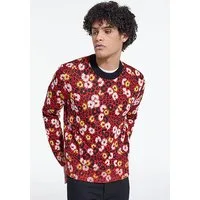 The Kooples Pull Col Rond En Jacquard Fleurie Dark Red