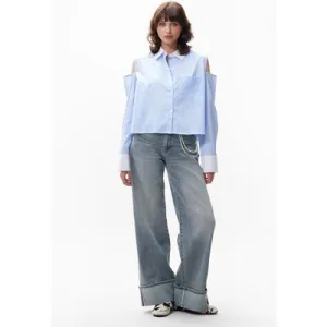 Catwalk Junkie Open Shoulder Blouse Cornflower Blue
