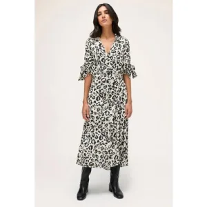 French Connection Renji Modal Roll Nk Midi Dress Camel