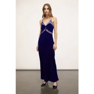 Motivi Smooth Velvet And Lace Lingerie Dress Blue