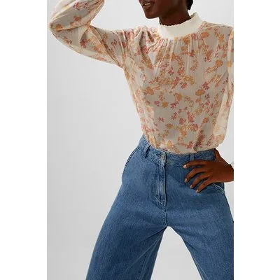 French Connection Diana Crinkle Long Sleeve Top Classic Cream Multi