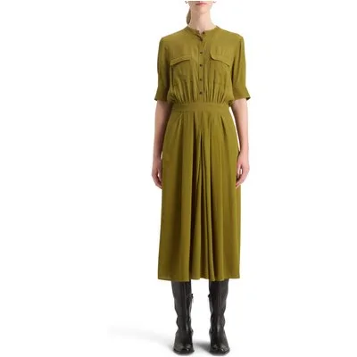 Scotch & Soda Crepe Midi Dress With Chest Pockets Olive