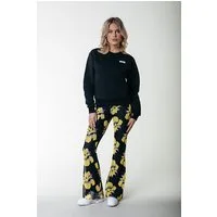 Colourful Rebel Big Flower Mesh Extra Flare Pants Bright Yellow