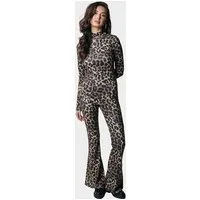 Colourful Rebel Leopard Peached Extra Flare Pants Warm Brown