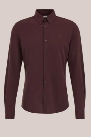 WE Fashion – Heren tall fit overhemd van piquéjersey – Slim/Tall fit – Rood – Katoen –