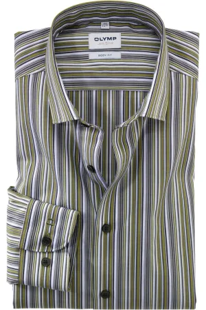 OLYMP Level Five Body Fit Overhemd limegroen, Gestreept