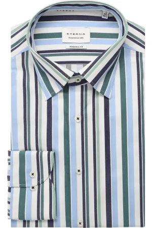 ETERNA Overhemd groen/blauw/wit, Gestreept