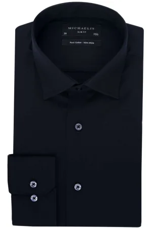 Michaelis Slim Fit Overhemd zwart, Effen