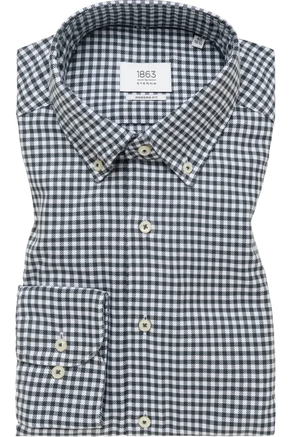 ETERNA 1863 Flanellen Overhemd groen, Effen