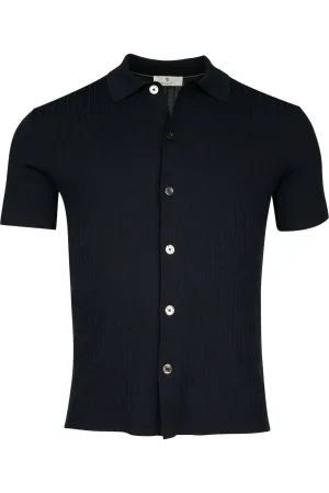 ETERNA 1863 Linnen Overhemd marine/wit, Bedrukt