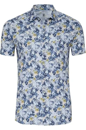 Venti Overhemd blauw, Bedrukt