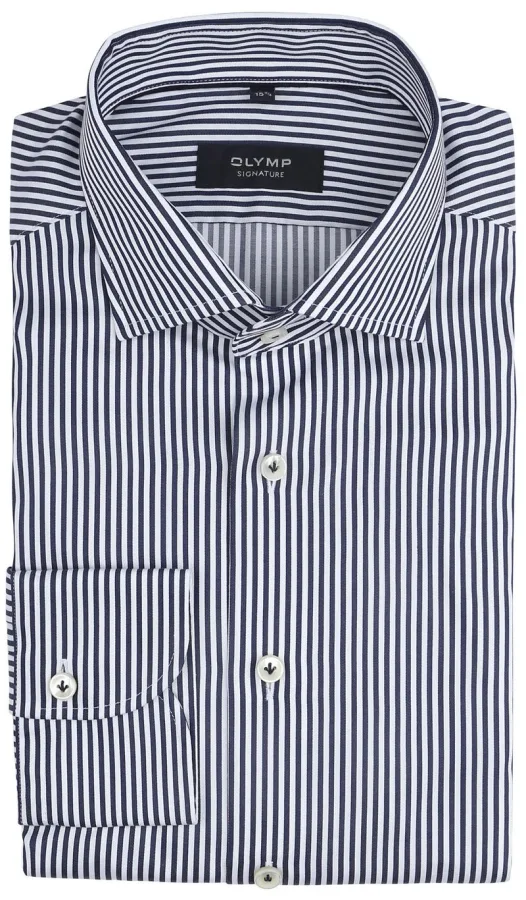 OLYMP No. Six Super Slim Overhemd marine, Gestreept