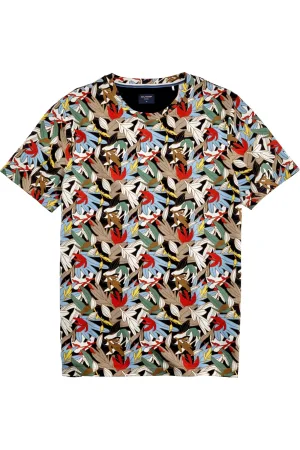 OLYMP Casual T-Shirt ronde hals caramel, Bedrukt