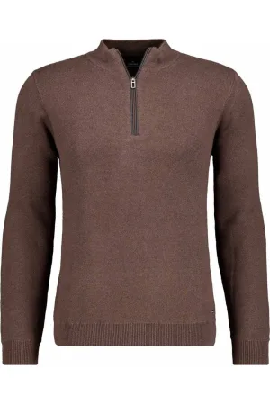 Casa Moda Casual Regular Fit Half-Zip Sweater bruin, Effen